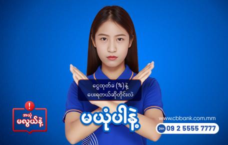 CB Bank နေပြည်တော် (Junction) ဘဏ်ခွဲကို ၂၀၂၅ ခုနှစ်၊ အောက်တိုဘာလ၊ ၂၃ ရက်နေ့မှစတင်၍ ယာယီနေရာပြောင်းလဲဖွင့်လှစ်ကာ ဘဏ်လုပ်ငန်းဝန်ဆောင်မှုများ...