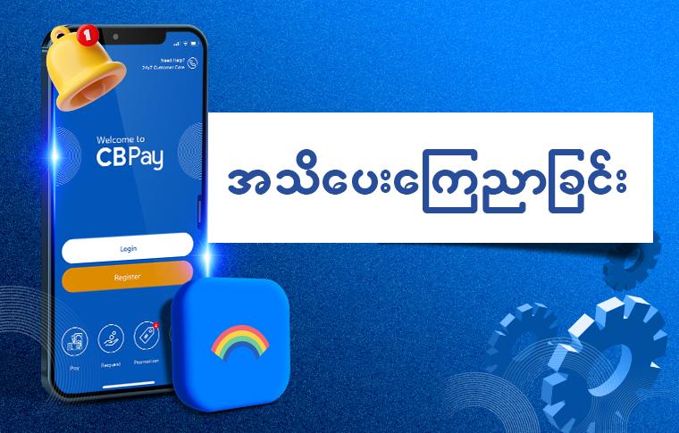 ဘဏ္ဍာရေးဆိုင်ရာ နှစ်ချုပ်စာရင်းပိတ်လုပ်ငန်းများ လုပ်ဆောင်မည်ဖြစ်ပါသဖြင့် ၂၀၂၆ ခုနှစ်၊ မတ်လ၊ ၃၁ ရက်၊ ည (၁၁:၀၀) နာရီမှ ဧပြီလ၊ ၁ ရက်၊ နံနက် (၅:၀၀) နာရီအထိ CB Bank ဘဏ်လုပ်ငန်းဝန်ဆောင်မှုများဖြစ်သည့် CB Pay, CB Bank iBanking နှင့် CB Card+ အစရှိသော ဒီဂျစ်တယ်ဘဏ်လုပ်ငန်း ဝန်ဆောင်မှုများ၊ ATM, CRM ဝန်ဆောင်မှုများ၊ CB Bank MMQR ဝန်ဆောင်မှုများ၊ CB POS ဝန်ဆောင်မှုများ၊ CB ဘဏ်ကတ်ဝန်ဆောင်မှုများ ခေတ္တရရှိမည်မဟုတ်ပါကြောင်း လေးစားစွာ ကြိုတင်အသိပေးအကြောင်းကြားအပ်ပါသည်။