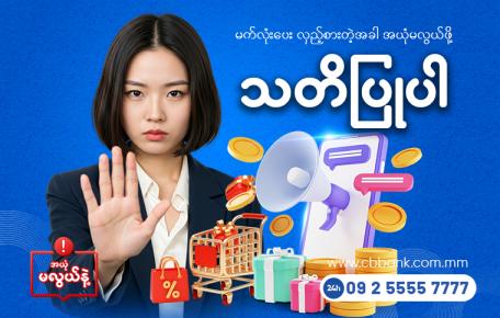 Online မှတစ်ဆင့် ငွေကြေးလိမ်လည်မှုများ ပိုမိုဖြစ်ပေါ်လာနေပါသဖြင့် သတိပြုဆင်ခြင်နိုင်ပါရန် CB Bank PCL ဝန်ဆောင်မှုအသုံးပြုနေသော Customer များနှင့်...