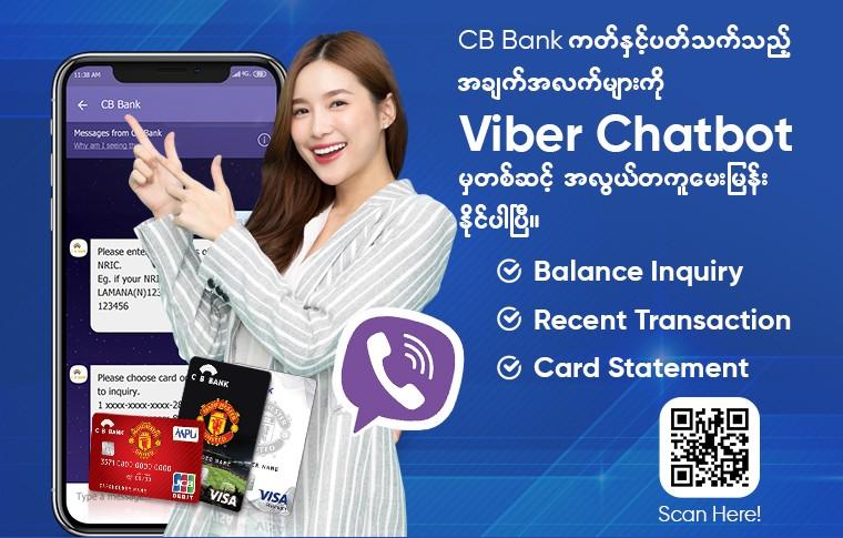 CB Bank ကတ်နှင့်ပတ်သက်သည့် အချက်အလက်များကို Viber Chatbot မှတစ်ဆင့် အလွယ်တကူမေးမြန်းနိုင်ပါပြီ