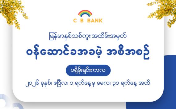 CB Bank ရဲ့ မိတ်ဟောင်းမိတ်သစ် Customer များအပေါ် ကျေးဇူးတုံ့ပြန်တဲ့အနေနဲ့ အောက်ဖော်ပြပါ ဘဏ်ဝန်ဆောင်မှုတွေကို အခမဲ့ ဆောင်ရွက်နိုင်မဲ့အကြောင်း...... more